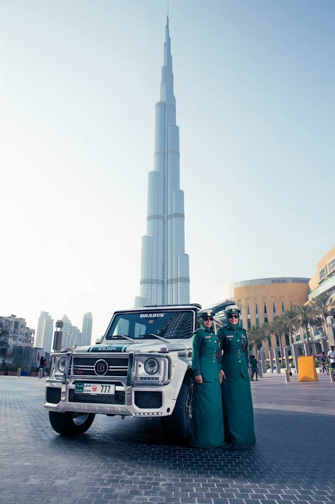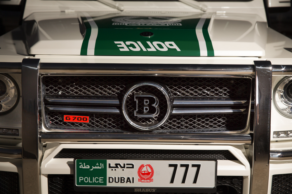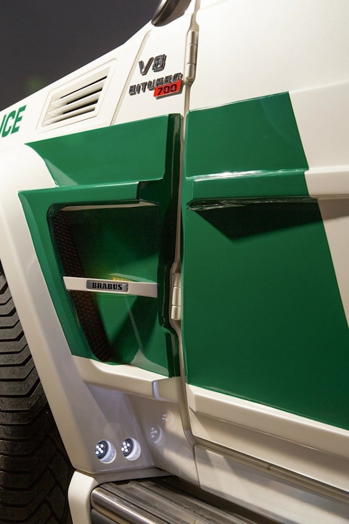 Next time your in Dubia roaming around in your 3 hundred dollar thousand Lamborghini attempting to break the sound barrier and on your rear view mirror you see beefed up Mercedes G63 AMG… either you should pull over or move over to the next land. This is because the Dubai Police adds another exotic vehicle to its line up, The Mercedes Brabus B63-S 700 Widestar tuned version of the Mercedes-Benz G63 AMG which was recently debuted at the 2013 Dubai Motor Show in police livery. The OEM G63’s that includes a 5.5-liter, twin-turbocharged V-8 is already pretty potent. However, Brabus add their magic touch which was able to extract 700 horses out of the 5.5-liter, twin-turbocharged V-8, with that extra power, Brabus says the B63-S 700 Widestar will do 0-62 mph in 4.9 seconds and reach a top speed of 149 mph–perfect for pursuing all the super-cars roaming the streets of Dubai.