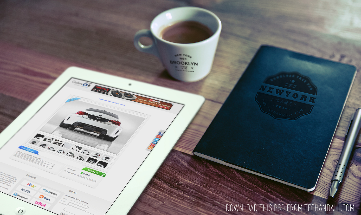 Here’s our newest mock up, Im calling it “Good Morning” yeah don’t ask… it includes a background from raumrot, that showcase an iPad, Cup Logo & Notebook Logo with smart layer for easy drag and drop of you own work. You can download the PSD below. Take a look at the high-res preview below.