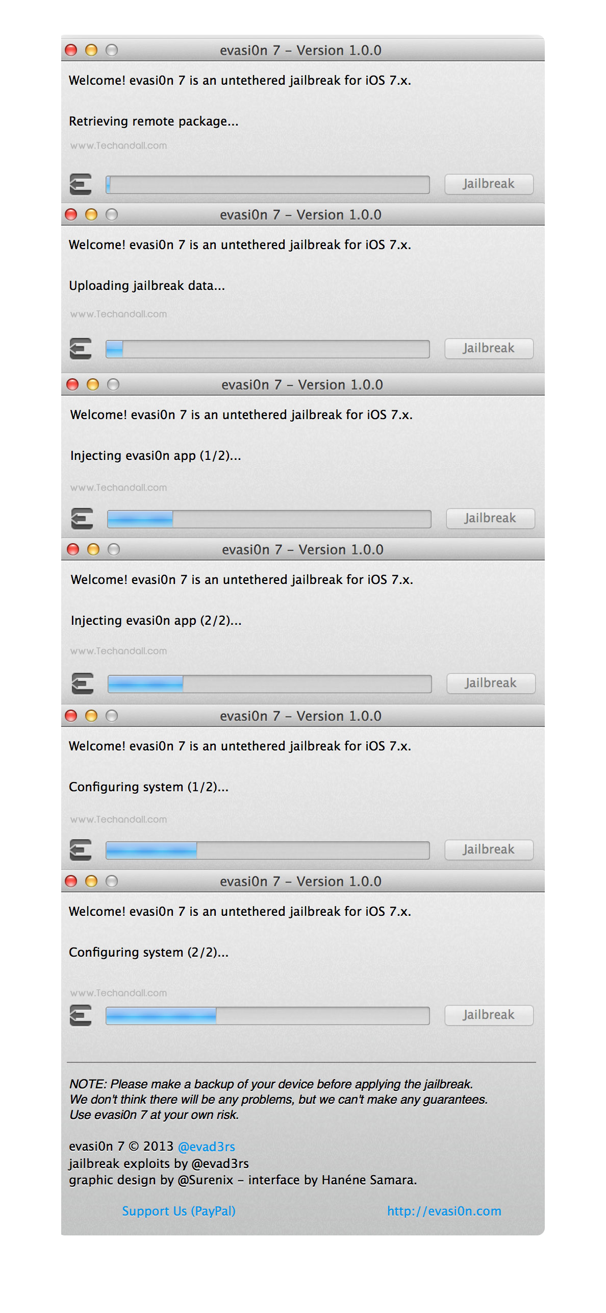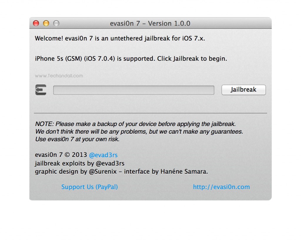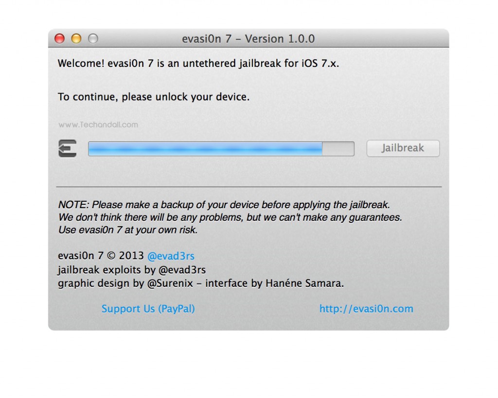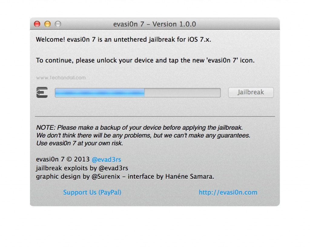 Let’s get started: First you’ll need to do is download the version of evasi0n 7 for your operating system. You can do so on evasi0n.com. or you can download the files from TechAndAll mirror at Mega.co.nz