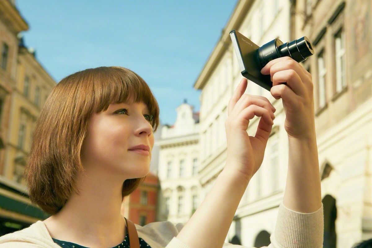 The QX100 wirelessly connects to your smartphone using wifi and NFC, you can attach QX10 to your smartphone or use the lens independently, by holding the camera in one hand and your phone in the other (the phone sees what the lens sees!).