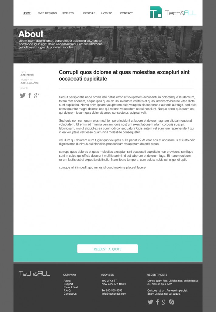 Here is the newest add to our .PSD collection. This one if a full layout in .psd fully laid out and ready to use. We’re calling this one Teal Simple Website Template, I went with the teal color on this, but you can change it to what ever you like to match your own style. You can zoom in on the image below or just download from the link below. We recommend using Nivo Slider for this one.