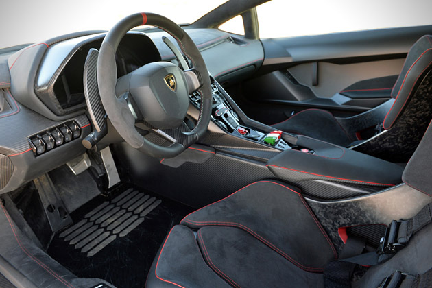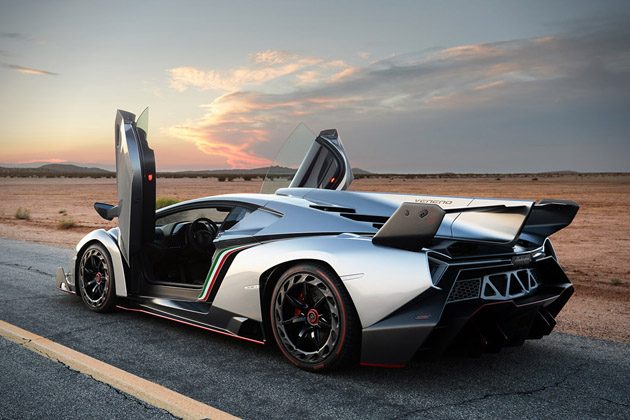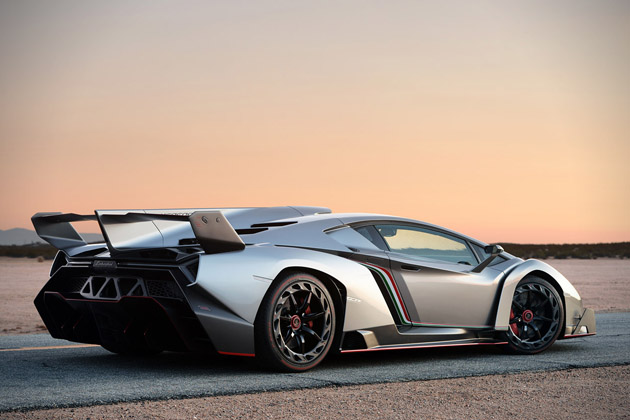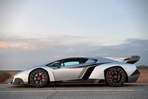 Named for a Spanish fighting bull that killed a toreador in 1914, the Veneno uses carbon fiber everywhere, from the tweaked Avendator chassis to the body and interior controls. Even the wheels wear a carbon fiber ring that Lamborghini claims acts like a vortex to shunt air toward the brakes for cooling.