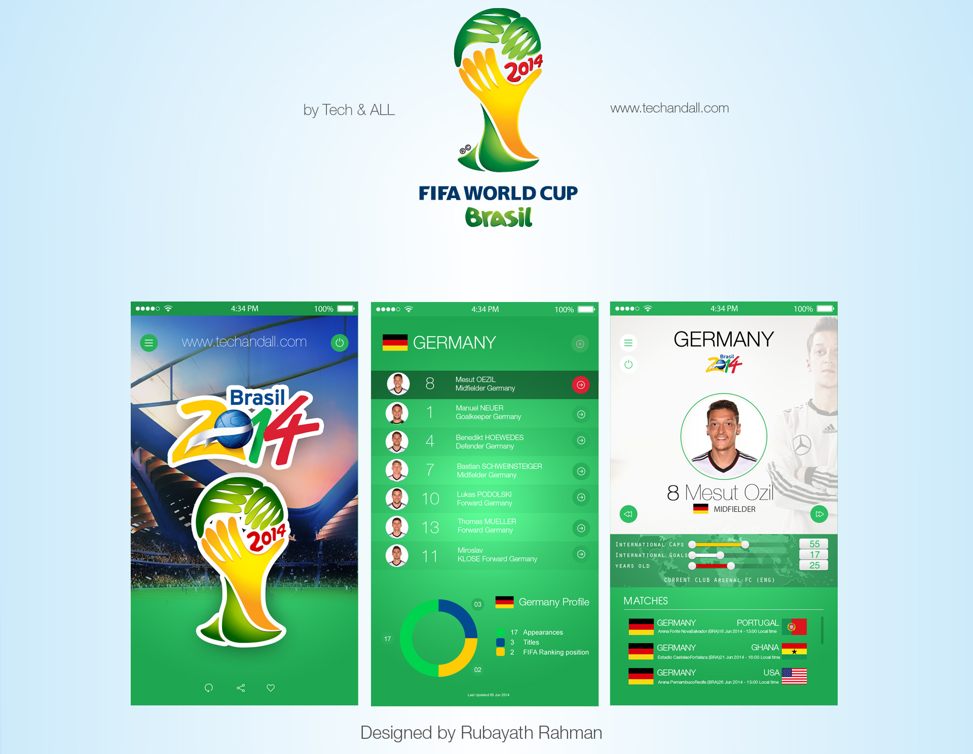 In sprite of everything WORLDCUP 2014, and my favorite team Germany and the man who will take us to the final Ozil, I created an app concept based on WorldCup 2014. Check out the massive preview from below and download the PSD from the download button.